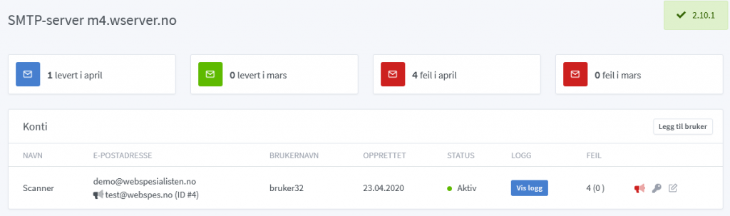 Skulle det være flere e-poster som blir avvist omtrent på samme tidspunkt, så vil du kun bli varslet om en den ene, slik at mailboksen din ikke blir overfylt ved f.eks. massefeil. Du kan da logge inn i kontrollpanelet og få flere detaljer på alle leveringer.