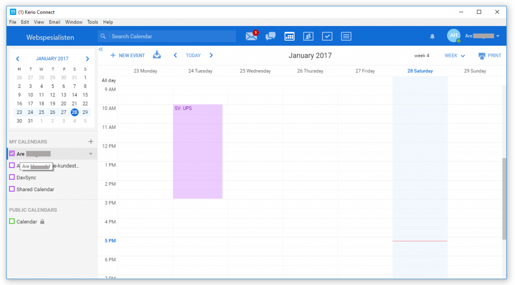 Kerio har også en gratis valgfri e-postklient du kan bruke som fungerer veldig bra og etter vår vurdering raskere og enklere enn Outlook. Denne ser du under og er nokså lik nettleser-utganven:
