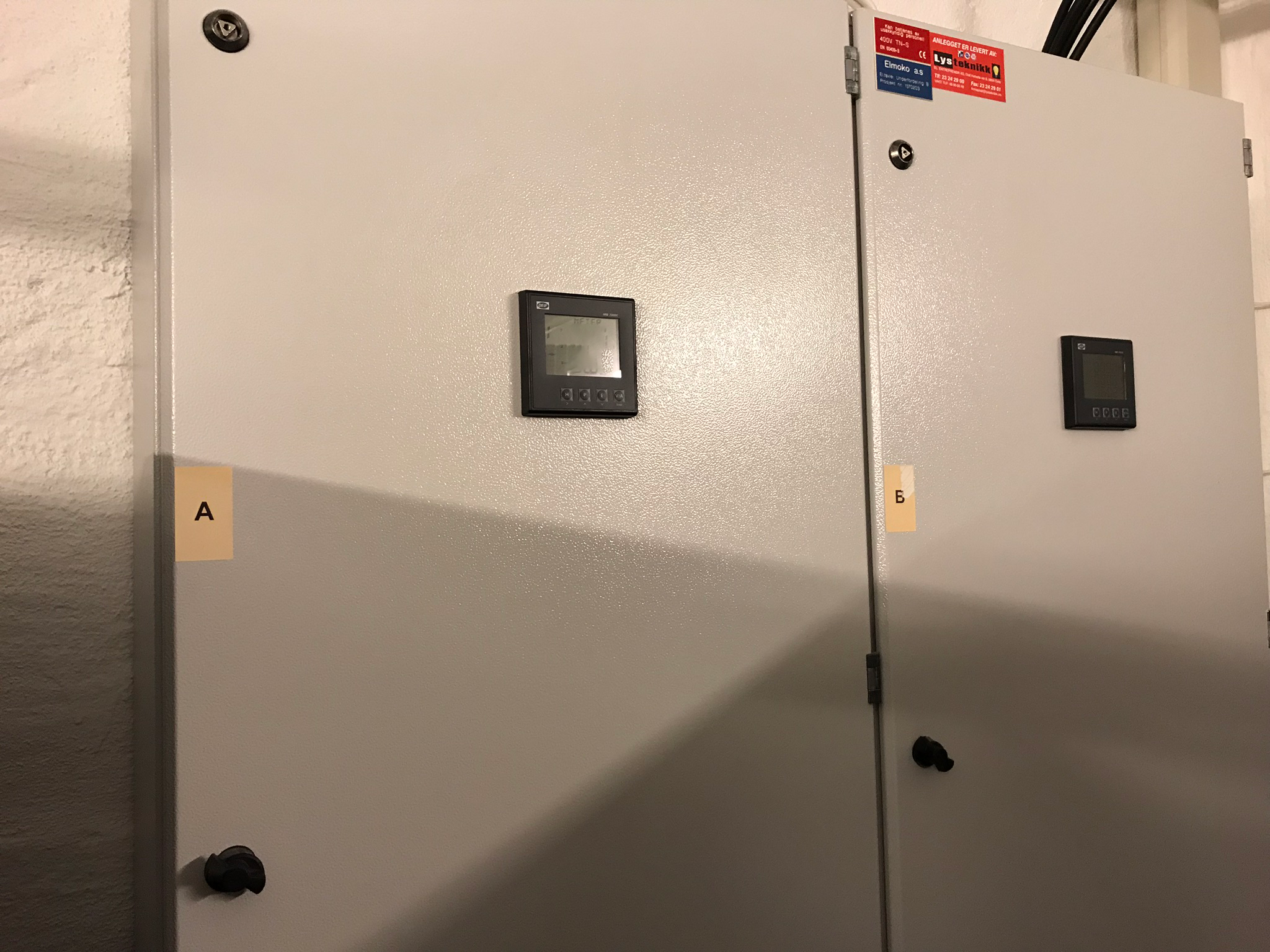 Vi har sikret oss med redundant eller dobbel nødstrøm, som sørger for at maskiner holder seg oppe selv om strømmen skulle gå plutselig. Disse utvjevner også strømforskjeller/overspenning i det daglige for å sikre kostbart serverutstyr.