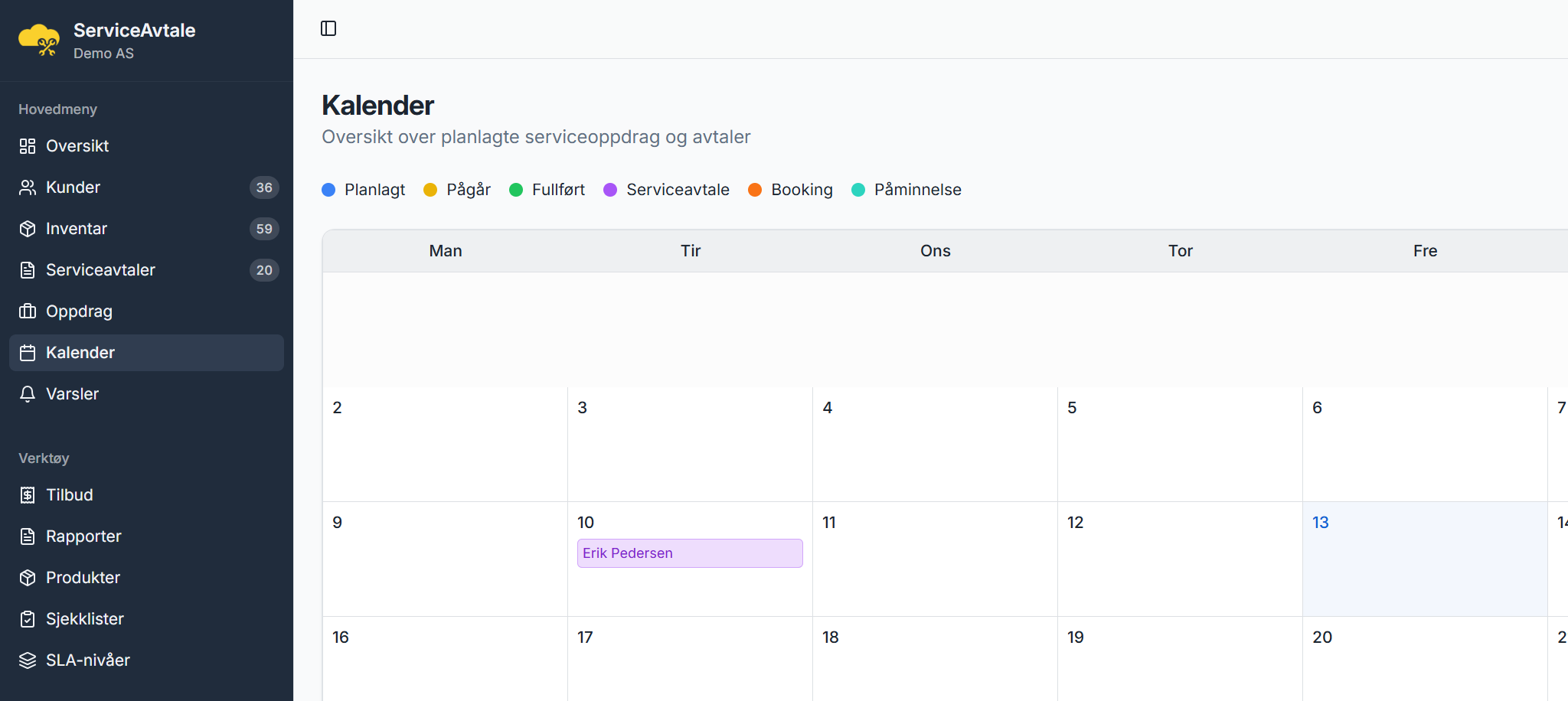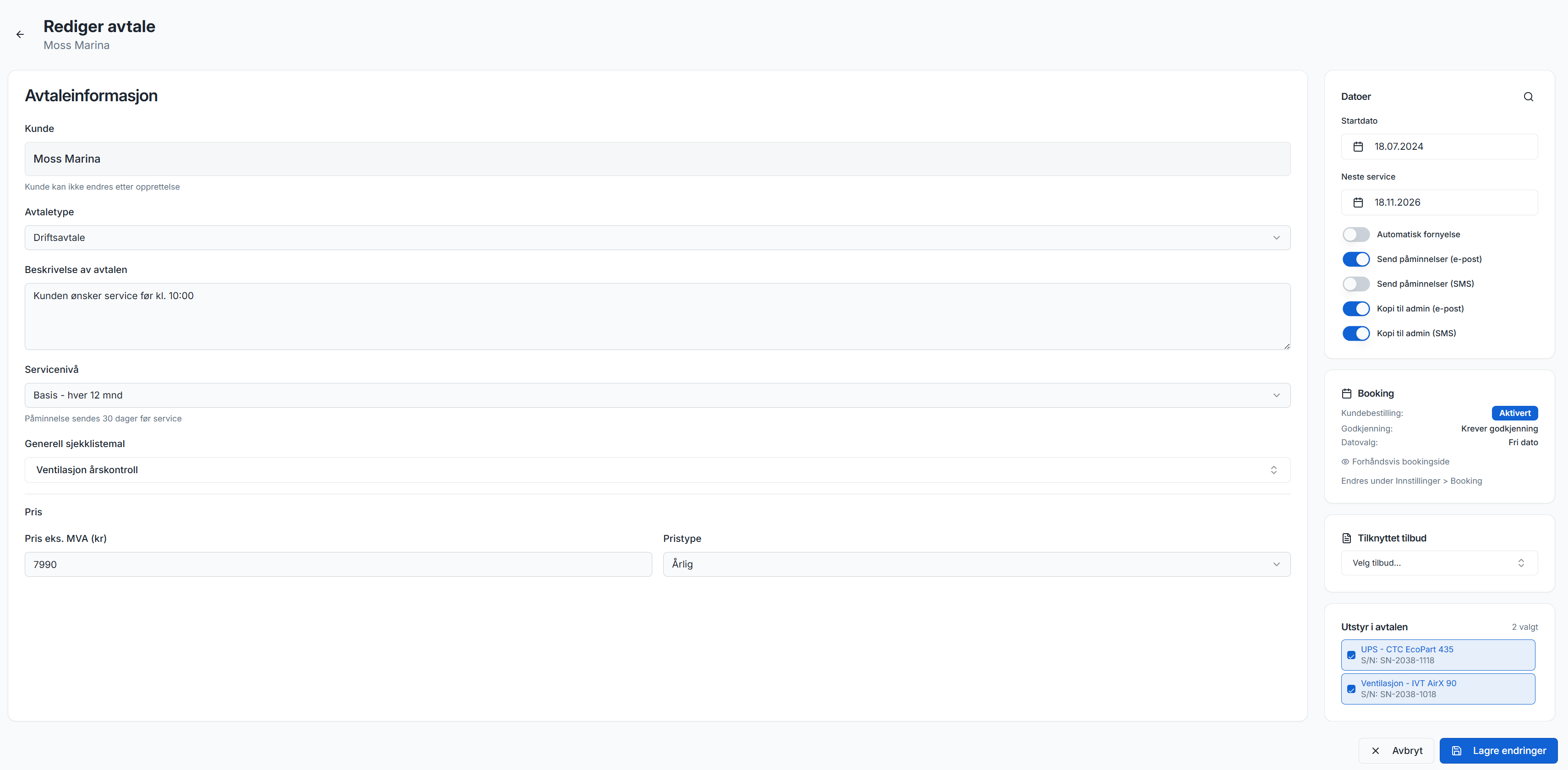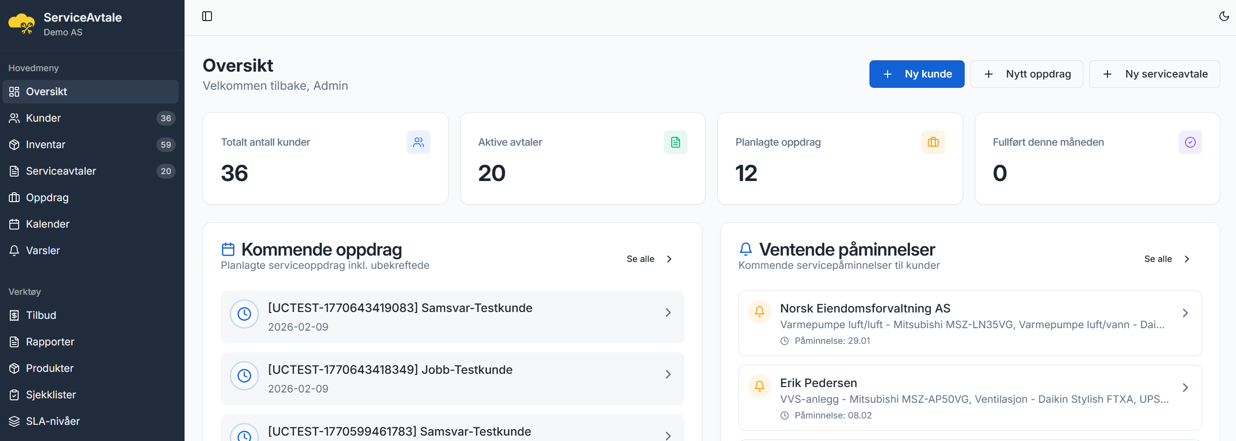 Komplett løsning for digitale serviceavtaler, automatiske påminnelser og profesjonell kundeoppfølging — skreddersydd for håndverkere og servicebedrifter som elektrikere, rørleggere, varmepumpe-montører og UPS-service.