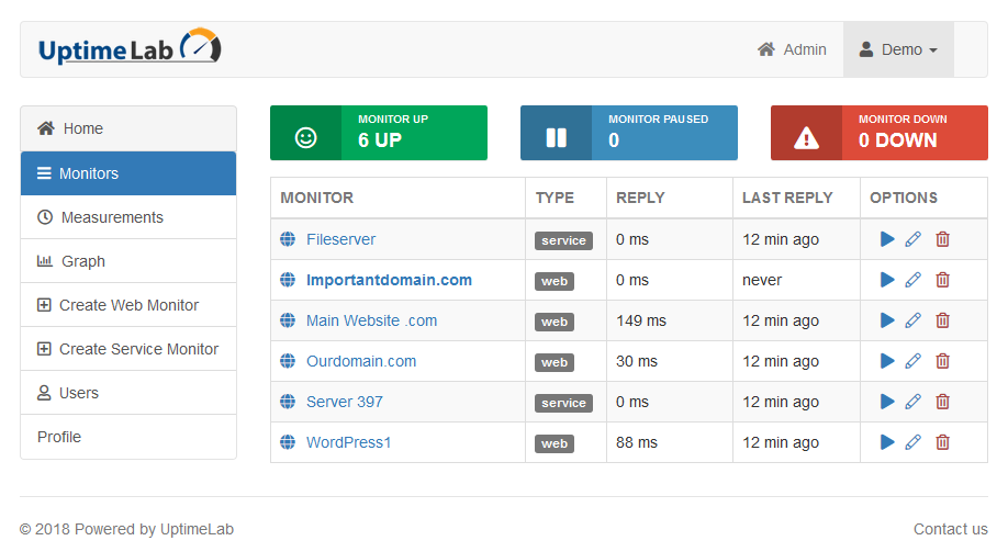 Tjenesten støtter varsling via e-post og SMS. Med UptimeLab får du en komplett overvåkning.